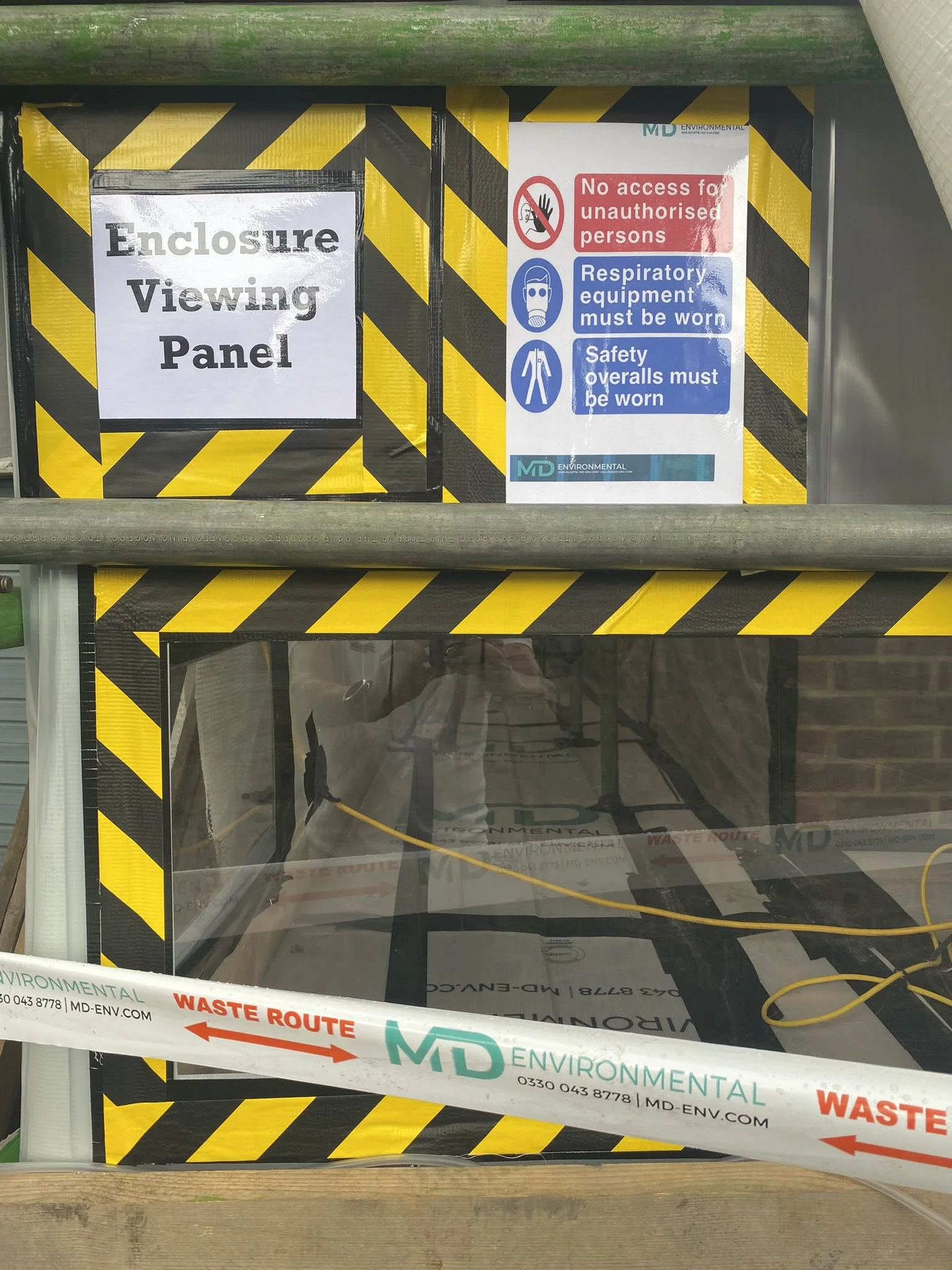 Viewing panels were set up to allow safe observation of the removal process, while a clearly defined waste route ensured all contaminated material was double-bagged and disposed of in line with hazardous waste regulations.